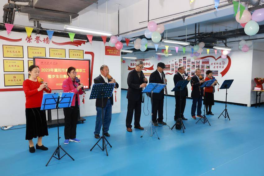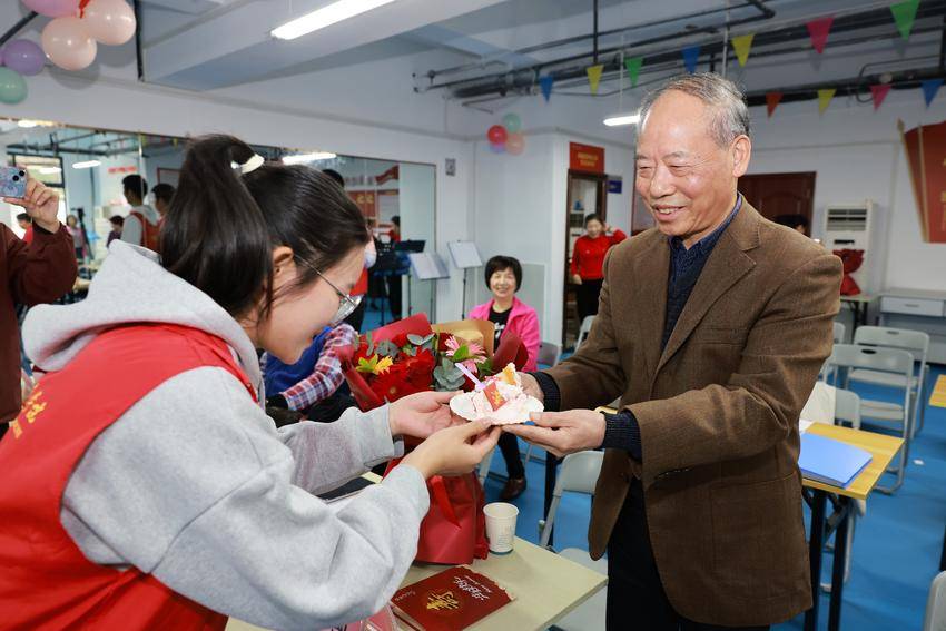 湖医药今年过整岁生日的老教师共有34人,该校党委副书记、校长王云甫,党委常委、副校长严世荣为现场参加活动的19位寿星发放慰问金,祝愿他们节日快乐、健康长寿;青年学子为老人们送上鲜花祝福。