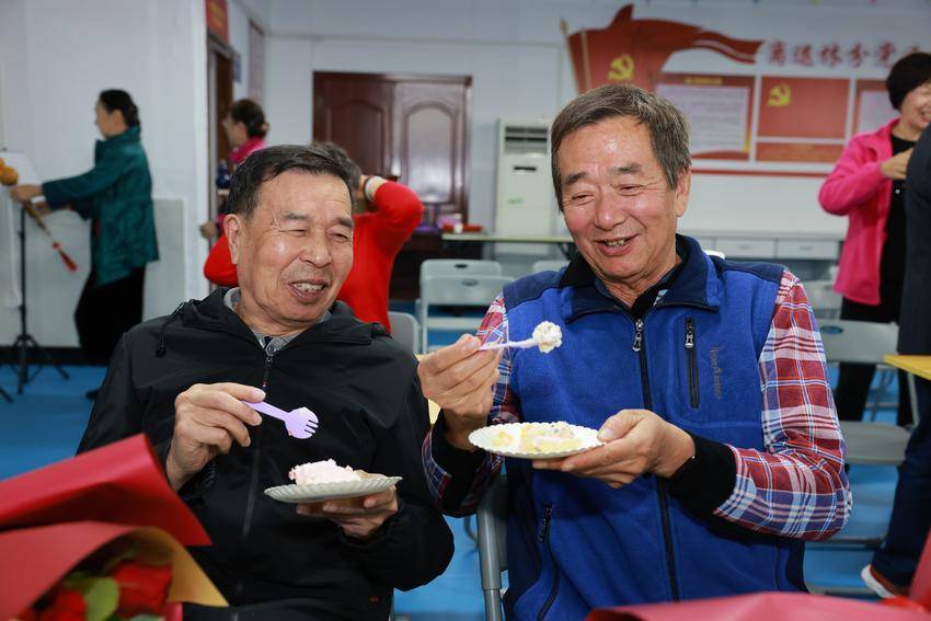 王云甫感谢老同志为学校事业发展全心全意、呕心沥血、殚精竭虑、鞠躬尽瘁,祝愿老同志们身体健康、万寿无疆。大家一同为寿星祝寿、切分蛋糕、分享美食,师生共唱《生日歌》。