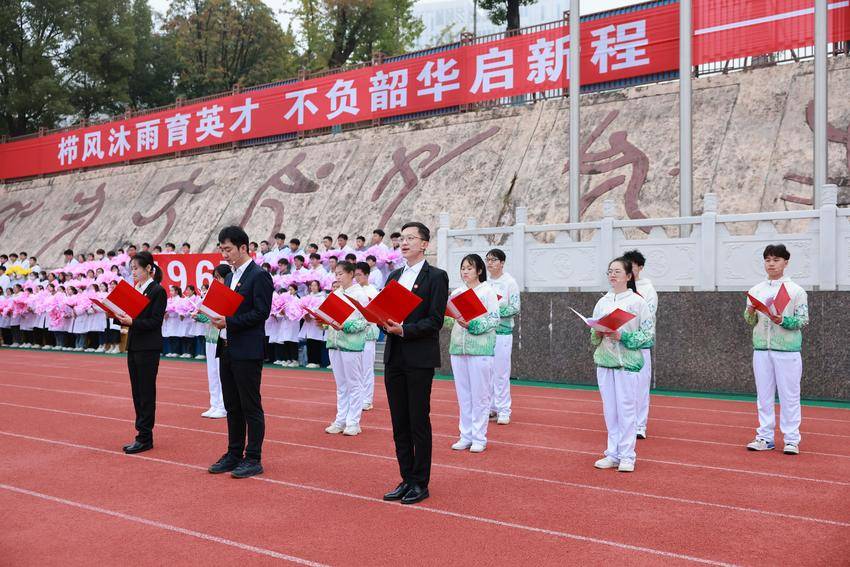 湖北日报客户端讯(通讯员曲晴 郭岱铮)2023年11月8日,湖北医药学院在田径运动场举行“栉风沐雨育英才,不负韶华启新程”校庆日主题升旗仪式,庆祝学校建校58周年。全体校领导、师生代表近千人参加活动。