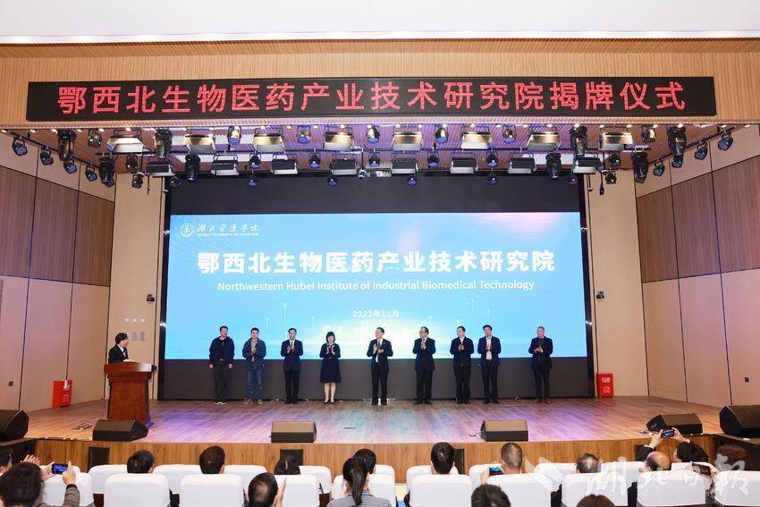 湖北日报客户端讯 11月8日上午,鄂西北生物医药产业技术研究院在湖北医药学院成立并揭牌。中国中医科学院首席研究员林娜和十堰市卫健委、科技局、农科院、湖北医药学院、市生物医药产业领导小组成员单位负责人及十堰市生物医药企业代表共同为研究院揭牌。