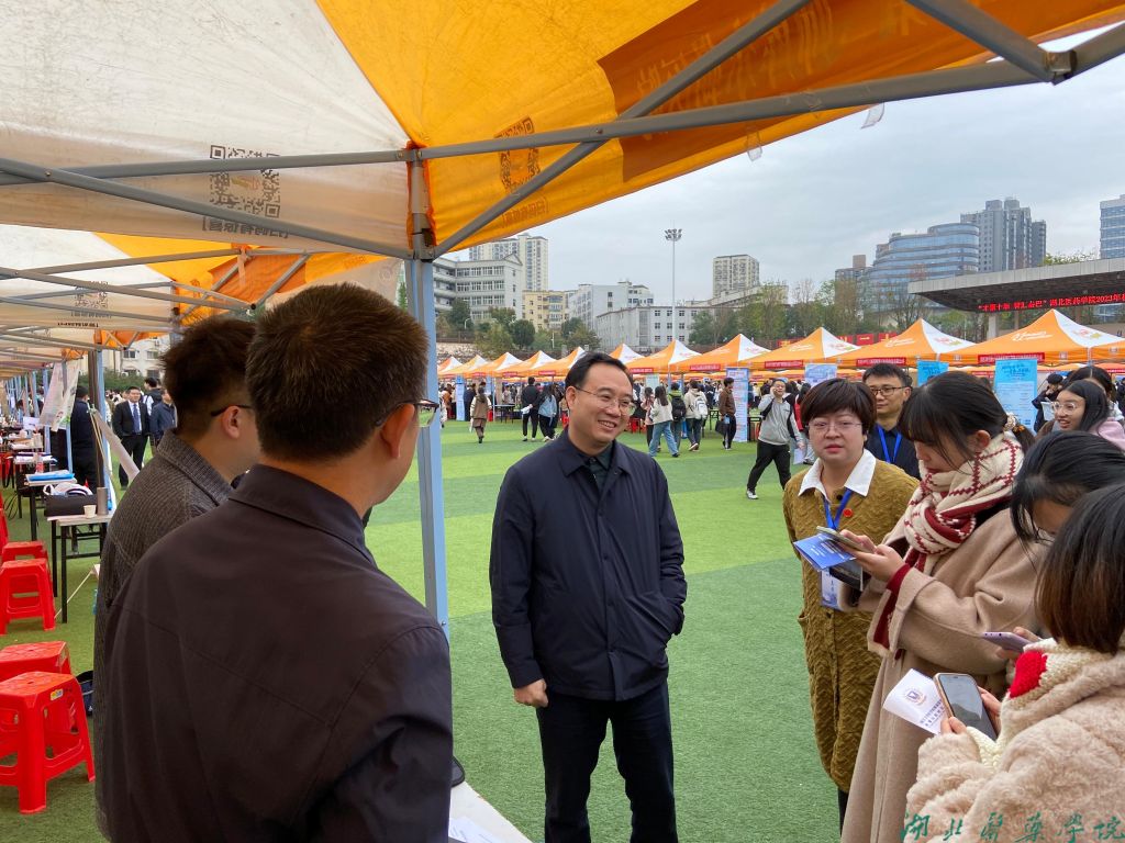 党委副书记、校长王云甫在招聘会现场与毕业生亲切交谈