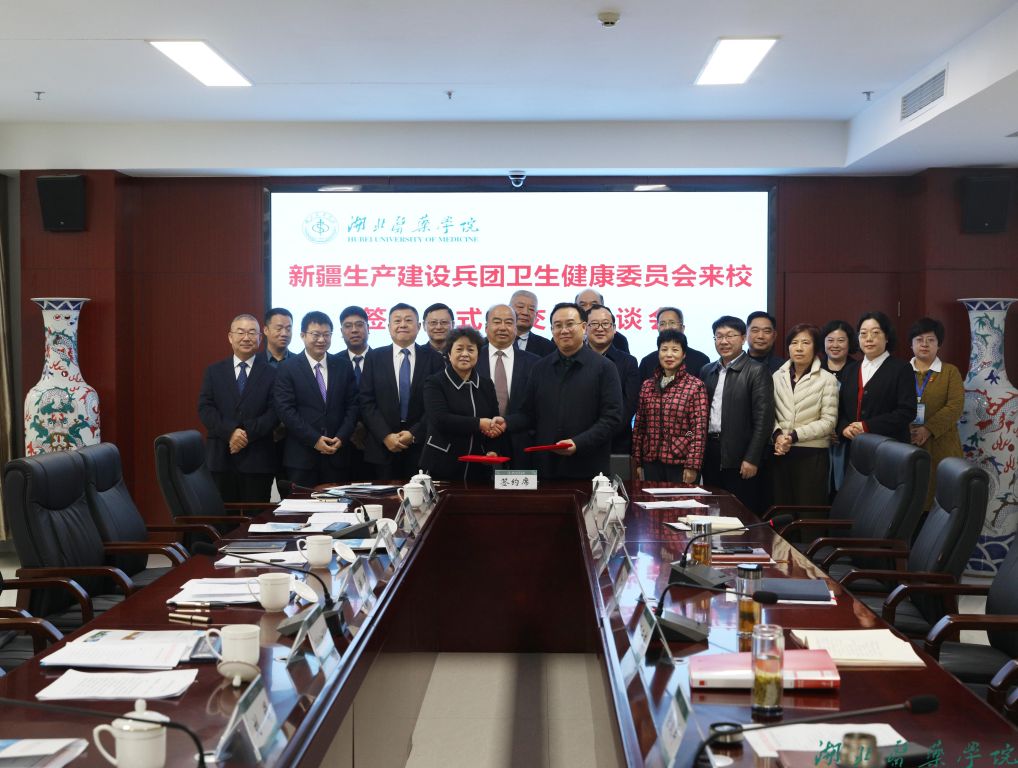 兵团卫健委党组成员、副主任、兵团疾病预防控制局党组书记、局长谢昕与湖北医药学院党委副书记、校长王云甫分别代表双方,签订战略合作框架协议。协议双方将围绕共建一体化人才培养基地、开展高层次人才交流、联合开展科学技术攻关、协同开展医疗中心建设等方面加强合作。