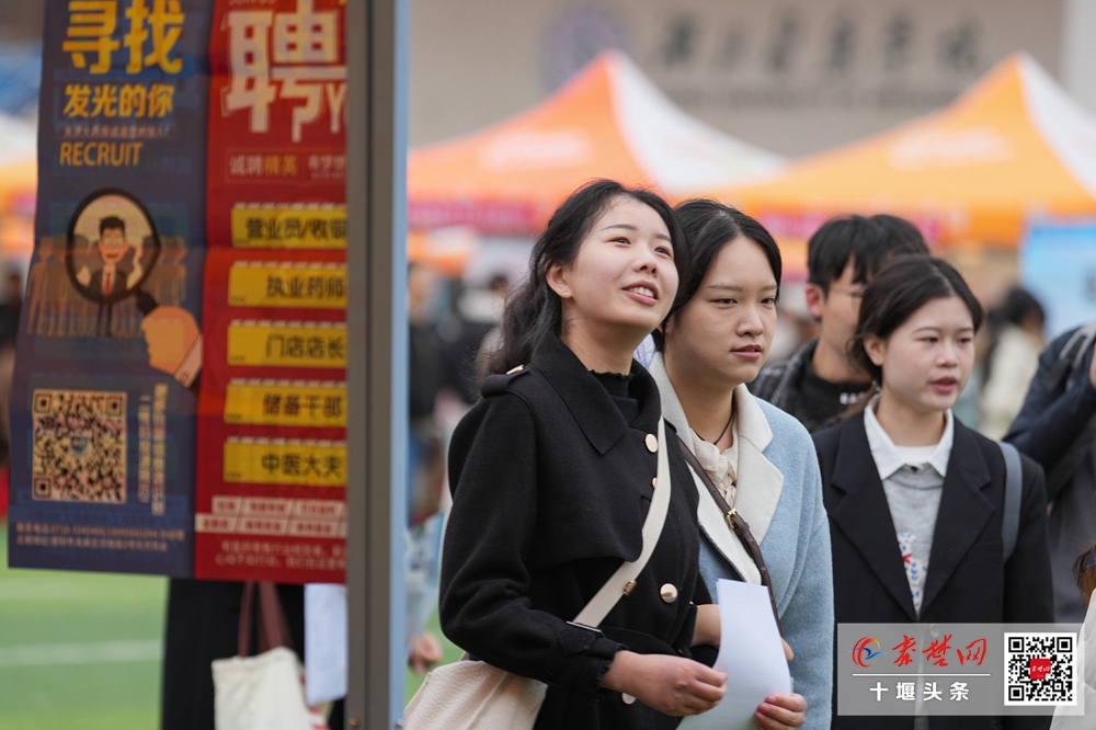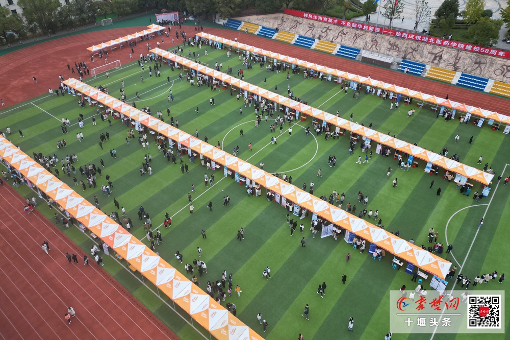 11月10日,湖北医药学院、湖北医药学院药护学院在该校田径运动场举行2023年秋冬大型招聘会,为该校4000余名毕业生提供近8000个就业岗位。图/记者 刘成臣 特约记者 鲍晓宇