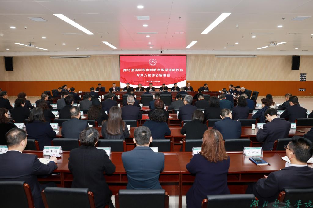 党委副书记、校长王云甫作本科教育教学审核评估专家入校评估说明会自评自建补充说明。他指出,自接受审核评估任务以来,学校围绕立德树人根本任务,坚持学生中心、产出导向、持续改进,师生全员参与。深化医教协同,强化校院融合发展;完善体制机制,强化师资队伍建设;多方筹措资金,强化资金使用效益;积极整合资源,强化办学水平改善;多元协同育人,强化卓越人才培养;聚焦新医科,强化一流建设引领。学校将以此次评估为契机,聚焦学生发展持续改进,将培养扎根基层、服务中西部应用型人才,作为学校高质量发展的使命和担当,为健康中国战略贡献湖医药力量。