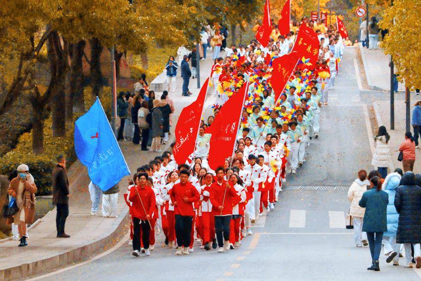 首先进行的是千人环校跑。“砰——”随着响亮的发令枪声响起,千余名师生以院为单位,排成长队从田径运动场浩浩荡荡出发,沿着汇智公寓、留学生餐厅、2、3号楼、同和美食广场、汇德公寓、5号楼、图书馆一路向前,最后返回运动场。全程共计1.8公里,虽然冬日的校园寒风阵阵,但环校跑“大军”依旧精神振奋,坚定奔跑,他们用青春的活力驱散了冬日的寒意,让也象征着湖医药人在新征程中奋勇直前。