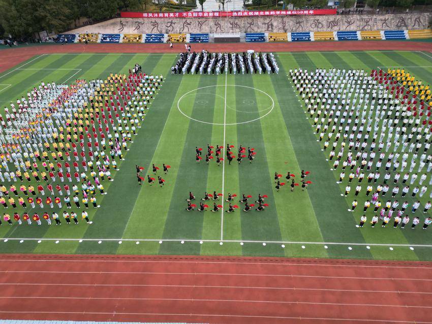 启动仪式上,表演方阵整装待发,随着时间推进变换着队形,给予观众强烈的视觉冲击。极具特色的《太极九式》《象王行》表演,其一招一式无不彰显着湖医药学子的青春活力。《剑韵梅香》中,表演者跟随音乐舞剑,刚柔并济、矫若游龙,展现极致的美感。《体育舞蹈》和《花球操》展现了学子的朝气蓬勃,飞扬的裙摆张扬着青春的魅力。最后登场的《你要跳舞吗》用极具现代风格的舞蹈,让全场气氛达到高潮。