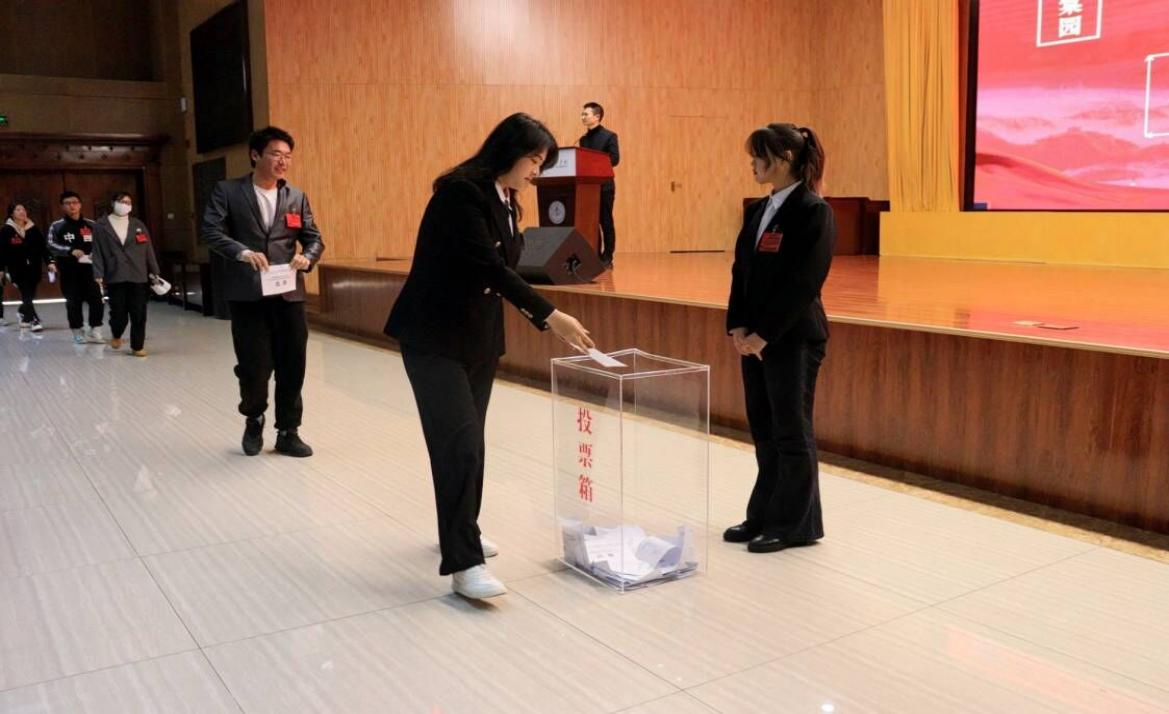 在听取主席团候选人成员进行的精彩竞选演讲后,各学院学生正式代表进行无记名投票,进行差额选举。在监票人、唱票人和计票人共同见证下,金佳妮、雍文博、郭坤、刘东琳四名同学当选为新一届学生会主席团成员。