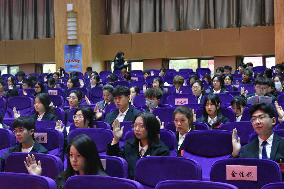 第七届学生会轮值主席张晶婷宣读关于“学习习近平新时代中国特色社会主义思想,在强国建设、民族复兴中挺膺担当”的倡议书。积极回应习近平总书记的号召,调动学子们青春建功、力争上游的积极性。经全体代表一致投票同意,大会通过了候选人产生办法、选举办法、监票、唱票、记票人建议名单。