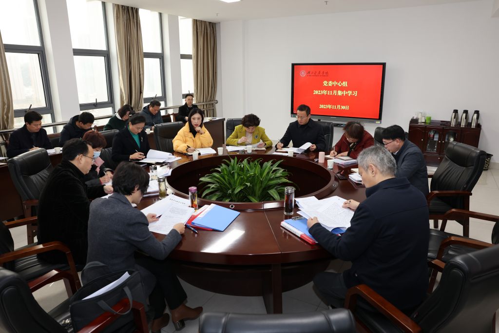 本网讯(文/陈旭 图/鲍晓宇)11月30日上午,校党委理论学习中心组在科教楼1707会议室举行11月份集中学习。校党委中心组成员、纪委副书记、党委工作部门负责人参会。党委书记郑丹凤主持学习活动并作总结讲话。