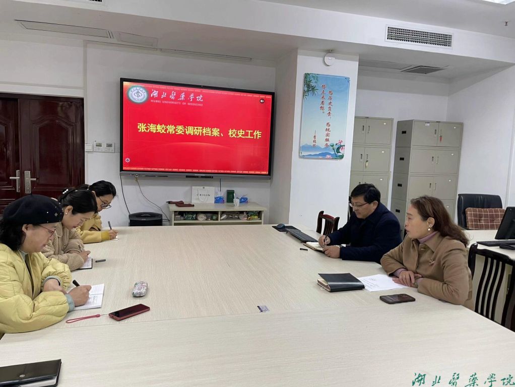 本网讯(通讯员 周莉)12月6日上午,校党委常委、组织部部长张海蛟深入档案馆调研指导档案、校史工作。档案馆、校史馆馆长王保郧汇报档案馆、校史馆基本概况、工作开展情况及近期重点工作。