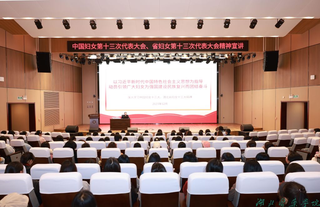本网讯(通讯员 文/魏燕 图/鲍晓宇)为深入学习贯彻第十三次全国全省妇女代表大会精神,12月7日下午,第十三次全国及省妇代会代表、十堰市妇联党组书记、主席张晓洁来校向广大妇女同胞做主题宣讲。校党委书记郑丹凤出席活动,全国巾帼文明岗、省巾帼建功集体负责同志、校工会、妇委会委员及师生代表两百余人参加报告会。