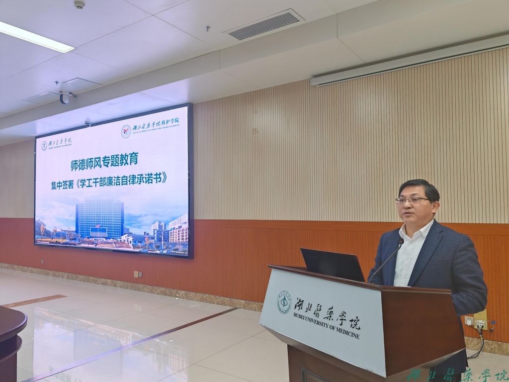 学生工作部解读专题教育实施方案,介绍“八个一”专项行动内容,共同学习《新时代高等学校教师职业行为十项准则》等规章制度。全体与会人员观看廉政警示教育片《陨落的青春》。