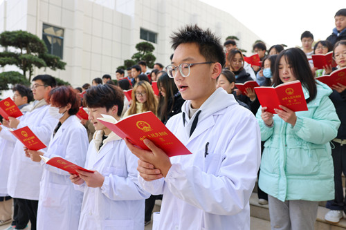 秦楚网-十堰头条讯通讯员 熊仁明 报道:“中华人民共和国公民必须遵守宪法和法律,保守国家秘密,爱护公共财产,遵守劳动纪律,遵守公共秩序,尊重社会公德……”2023年12月4日是第10个国家宪法日。当天清晨,湖北医药学院开展“宪法晨读”活动。各班学生手持《宪法》读本,齐声诵读,通过具有仪式感的宪法晨读,进一步增强大学生的宪法意识、国家意识和规则意识。