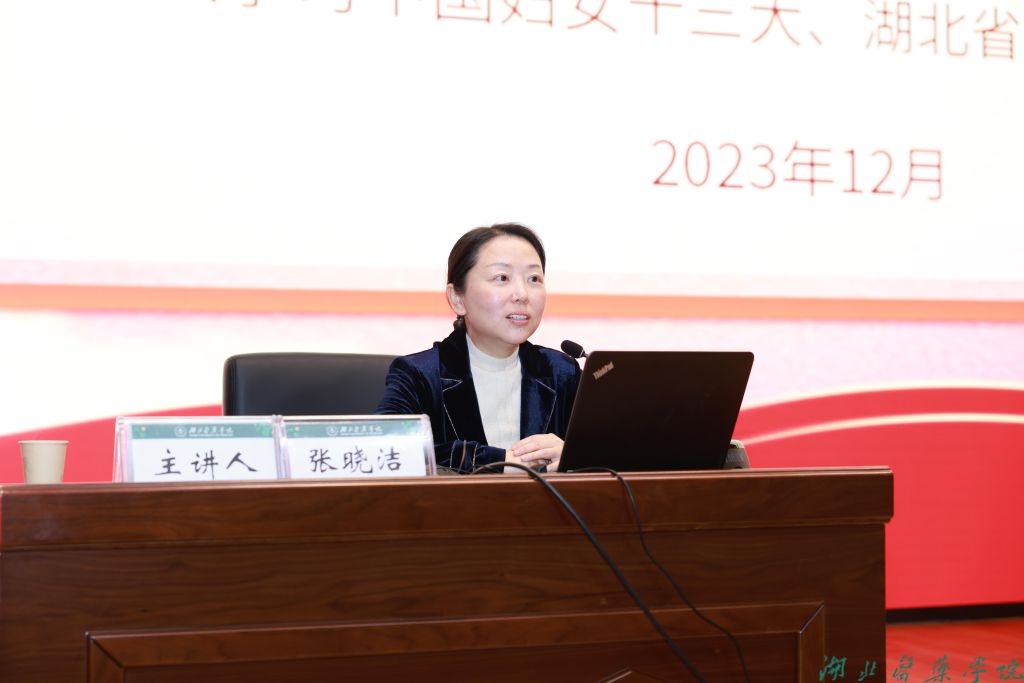 本网讯(通讯员 文/魏燕 图/鲍晓宇)为深入学习贯彻第十三次全国全省妇女代表大会精神,12月7日下午,第十三次全国及省妇代会代表、十堰市妇联党组书记、主席张晓洁来校向广大妇女同胞做主题宣讲。校党委书记郑丹凤出席活动,全国巾帼文明岗、省巾帼建功集体负责同志、校工会、妇委会委员及师生代表两百余人参加报告会。
