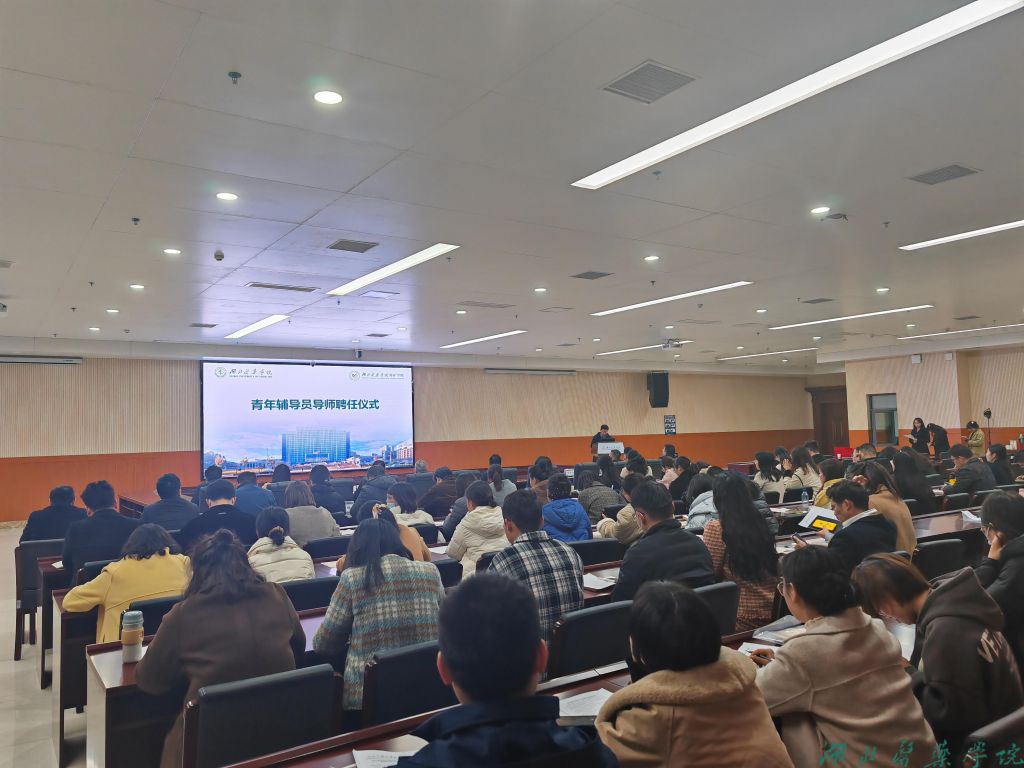 学工部宣读我校2023年青年辅导员导师聘任决定,第一临床学院潘金戈、护理学院郭琴分别代表青年辅导员和导师发言。