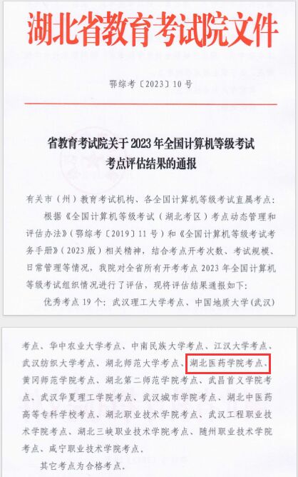 本网讯(通讯员 杨靖)近日,湖北省教育考试院公布2023年全国计算机等级考试考点评估结果,我校再次被评为优秀考点。