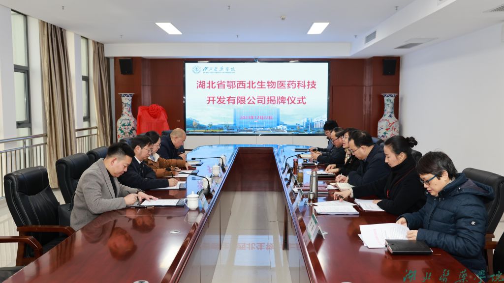 本网讯(文/宋园亮 图/鲍晓宇)12月22日,湖北省鄂西北生物医药科技开发有限公司揭牌仪式在科教楼1708会议室举行,党委书记郑丹凤主持活动。党委副书记、校长王云甫,党委常委、统战部部长谭艳,原党委书记、鄂西北生物医药产业技术研究院院长涂汉军出席活动。