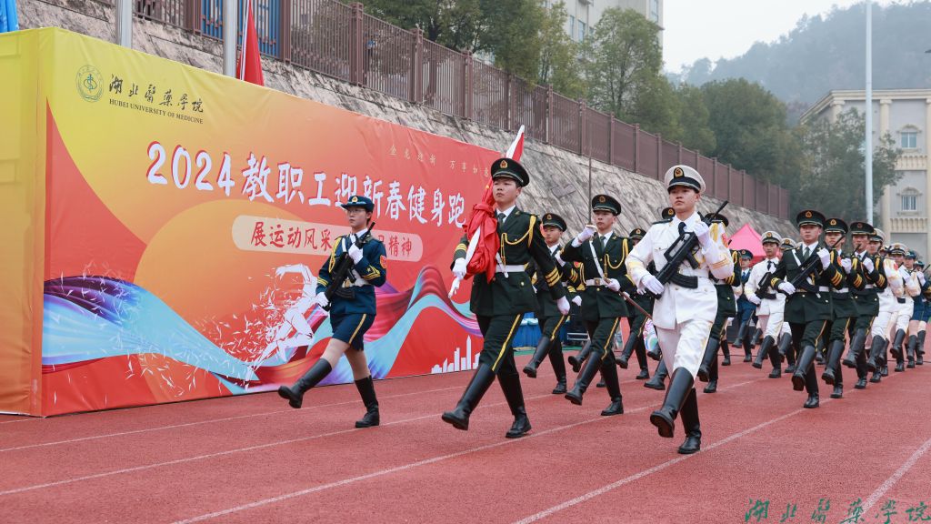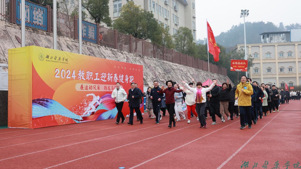 本网讯(文/魏燕 图/鲍晓宇 航拍/学通社记者 郭岱铮)岁序更替、华章日新。为贯彻落实全民健身国家战略,展示我校教职工积极向上、奋发有为的精神风貌,激励我校师生以昂扬的斗志和龙马精神迈入2024年。12月29日上午,湖北医药学院教职工迎新春健身跑活动在北校区田径运动场举行。全体在家校领导、800余名教职工、两家直属医院领导及职工代表参加活动。