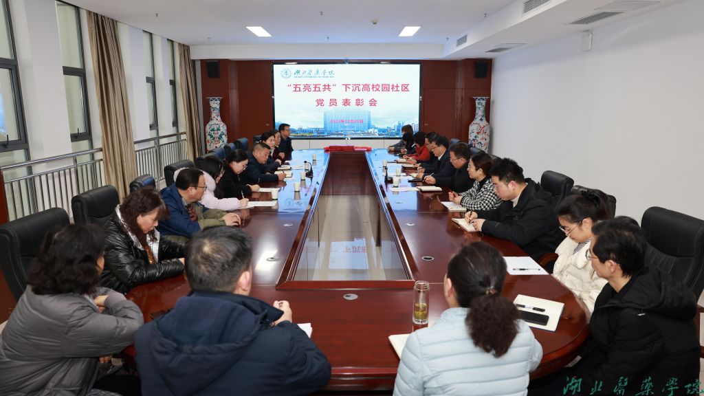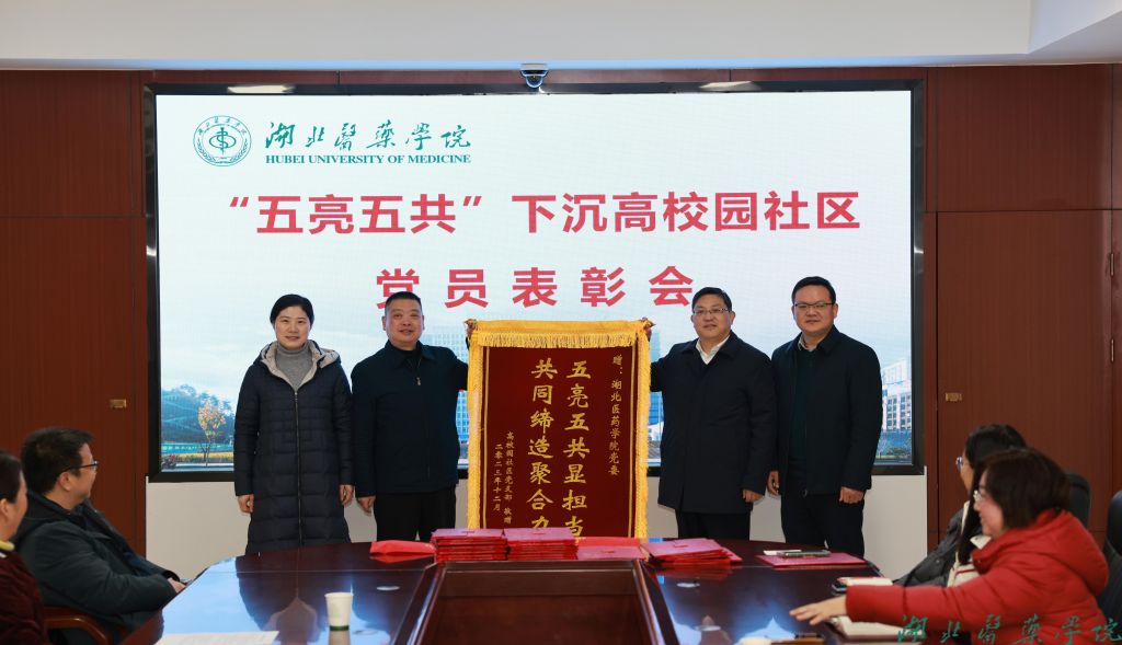 本网讯(文/赵峥 图/鲍晓宇)12月29日上午,下沉高校园社区“五亮五共”表彰会在我校召开,校党委常委、组织部部长张海蛟主持活动,二堰街道、高校园社区向湖北医药学院赠送锦旗,为优秀下沉党员颁发感谢信。