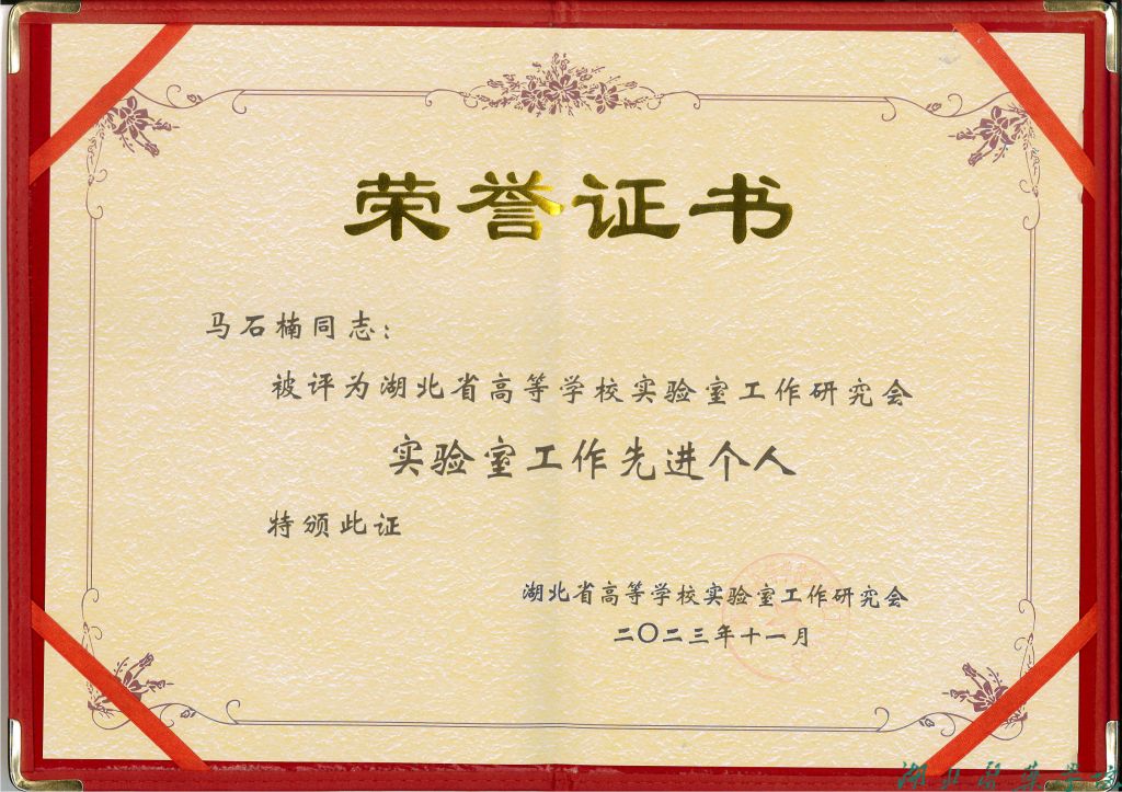 此外,由湖北省高等学校实验室工作研究会主办,武汉纺织大学承办,三峡大学协办的“湖北省高等学校实验室工作研究会2023年年会”,11月24-26日在湖北宜昌举行。本次年会对湖北省高校实验室工作的先进单位和先进个人进行表彰,我校胚胎干细胞研究湖北省重点实验室马石楠荣获“实验室工作先进个人”称号,这也是我校首次申报并获得该项荣誉。湖北省高等学校实验室先进个人的评选每四年开展一次,是为了促进高等学校实验室工作的改革与发展,在高校间营造崇尚先进、学习先进,争当先进的浓厚氛围。