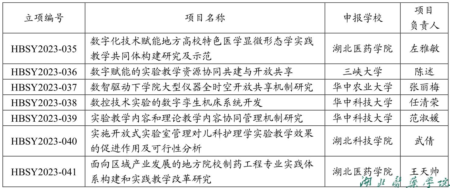 本网讯(通讯员 刘兴)近日,湖北省高等学校实验室工作研究会发布《关于2023年湖北省高等学校实验室研究项目立项的通知》,湖北省48所高校共175项有效立项申请,最终获批立项105项。我校首次申报的2项全部获批立项并获得立项资助,立项率100%。