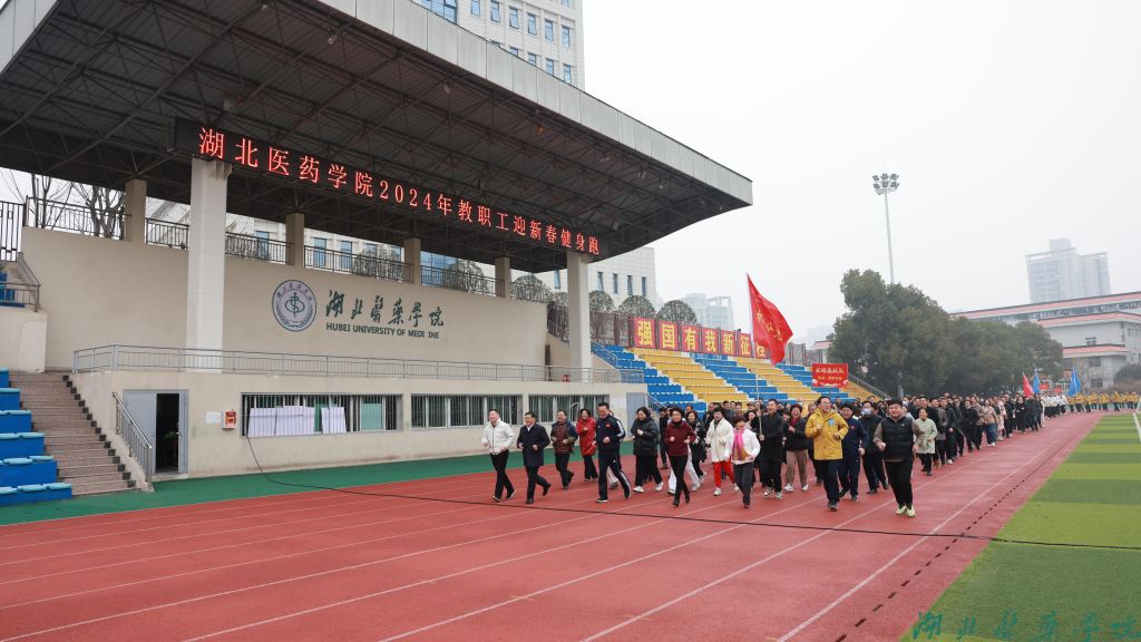 本网讯(文/魏燕 图/鲍晓宇 航拍/学通社记者 郭岱铮)岁序更替、华章日新。为贯彻落实全民健身国家战略,展示我校教职工积极向上、奋发有为的精神风貌,激励我校师生以昂扬的斗志和龙马精神迈入2024年。12月29日上午,湖北医药学院教职工迎新春健身跑活动在北校区田径运动场举行。全体在家校领导、800余名教职工、两家直属医院领导及职工代表参加活动。