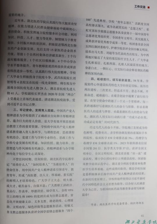 本网讯(通讯员 赵峥)2023年12月20日出版的《湖北党建》2023年第6期刊发我校党委常委、组织部部长张海蛟撰写的工作经验交流文章《传承精神谱系 走好发展之路》。