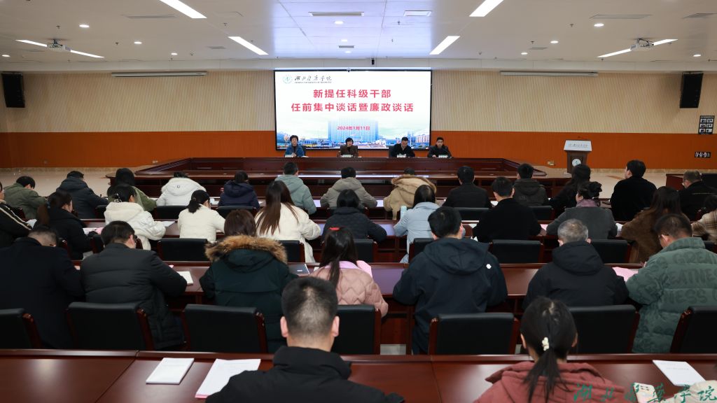 本网讯(文/陶鹏飞 图/鲍晓宇)1月11日下午,学校在科教楼一楼多功能厅开展新提任科级干部任前集中谈话暨廉政谈话,校领导郑丹凤、徐荣出席会议并讲话。校纪委、党委组织部负责同志及新提任的57名科级干部参加会议。