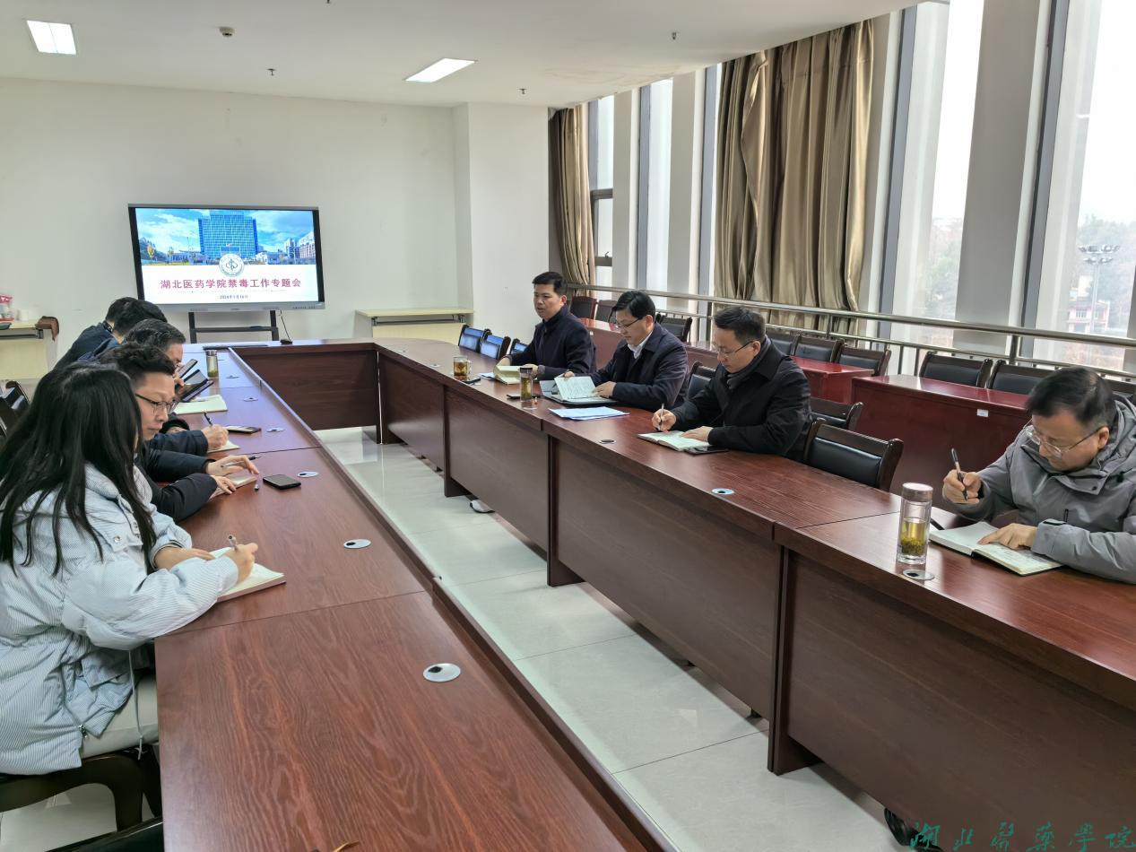 张海蛟传达全省禁毒重点整治工作视频会议精神,传达湖北省副省长、公安厅长徐文海同志在全省禁毒委员会第二次全体会议上的讲话,安排部署我校禁毒重点工作。张海蛟指出,禁毒工作是一项社会性工作,要靠每个人每个部门共同努力。保卫处要做好与十堰公安禁毒部门的联络,出台学校禁毒工作方案;宣传部要采取形式多样的宣传手段,营造毒品猛于虎的氛围;资产管理处要统筹药学院、基础学院以及武当医学研究院等试验平台,加强试剂采购管理使用环节管理;学工处、国际学院、研究生院要组织开好禁毒主题班团会,组织学生关注中国禁毒官方微博、湖北禁毒官方微博微信、十堰禁毒官方微信,确保宣传到位,让学生有渠道认知毒品危害。