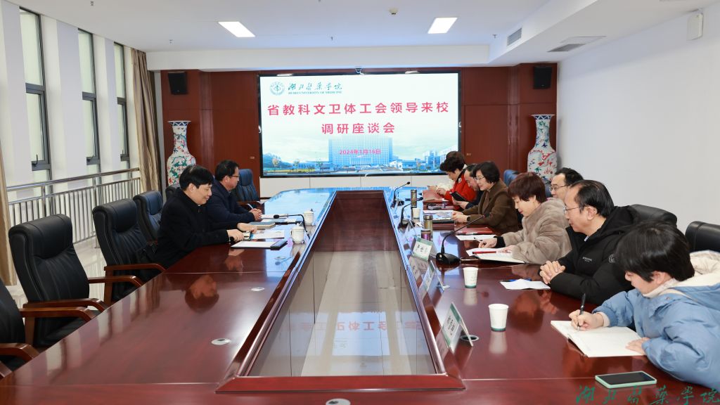 郑丹凤对熊晓泉、李学初一行来校调研指导工作表示热烈欢迎,对省教科文卫体工会多年来关心支持湖北医药学院建设与发展表示感谢。她从“两个唯一”“两个第一”“两个全国”“两个建设”“两位院士”等五张名片详细介绍我校基本情况。