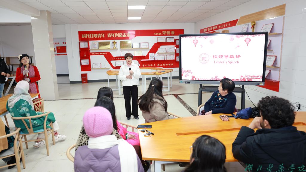 严世荣在活动现场发表了热情洋溢的致辞,她表示,学校是湖北省“双一流”建设高校,拥有一流的师资和优质的教学资源,广大留学生来我校学习是完全正确的选择。在龙年即将到来之际,她代表学校向广大留学生和他们的家人致以新年的问候,希望他们在新的一年身体健康,阖家幸福,学业有成。