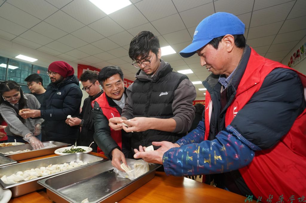 小心翼翼地收藏起自己的福字,留学生们又洗干净手,撸起袖子,加入到包饺子的队伍中。他们拿起饺子皮,放进一大勺饺子馅,合住、捏褶……学着厨师的样子认真包起来。不一会儿热气腾腾的饺子出锅,留学生们边吃饺子边竖大拇指,还品尝了食堂专门为他们做的腊八粥。留学生Rahat表示,“这是我第一次在中国迎新年,我们写了福字,还和老师们一起品尝了我们自己做的饺子,真是一次奇妙的经历,我更加期待春节的到来了”。