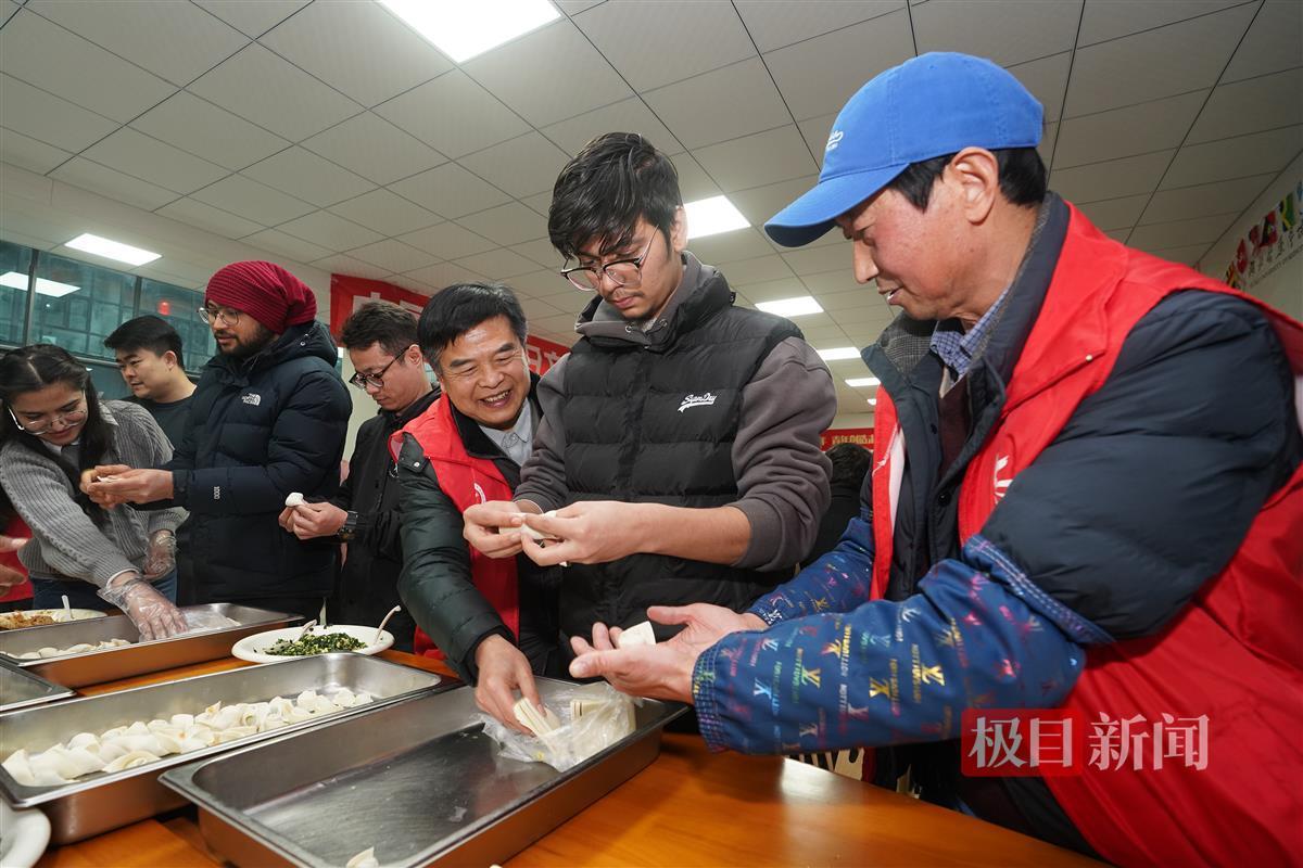 小心翼翼地收藏起自己的福字,留学生们又洗干净手,撸起袖子,加入包饺子的队伍中。他们拿起饺子皮,放进一大勺饺子馅,合住、捏褶……学着厨师的样子认真包起来。不一会儿热气腾腾的饺子出锅,留学生们边吃饺子边竖大拇指,还品尝了食堂专门为他们做的腊八粥。留学生rabat表示,“这是我第一次在中国迎新年,我们写了福字,还和老师们一起品尝了我们自己做的饺子,真是一次奇妙的经历,我更加期待春节的到来了”。