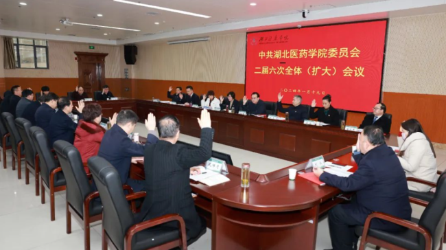 1月19日下午,中共湖北医药学院委员会二届六次全体(扩大)会议胜利召开。全体党委委员参加会议。会议由党委书记郑丹凤主持。