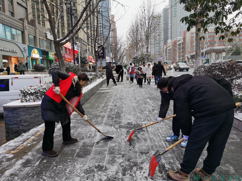 活动中,党员干部不畏严寒,顶风冒雪,手拿铁锹、扫帚等扫雪工具,对道路上的积雪进行清理。在大家的共同努力下,小区积雪路面已基本被清理干净,极大地方便了小区居民的出行,为小区居民提供了强有力的安全保障。