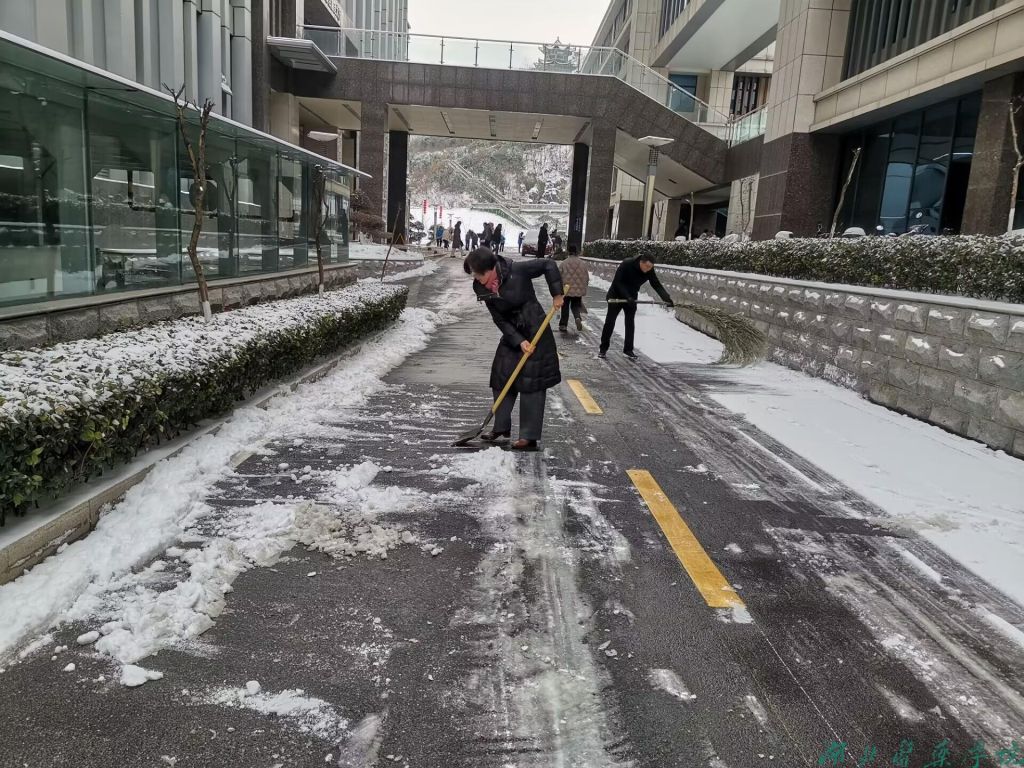 本网讯(文/郑建超 图/鲍晓宇 熊仁明 郑建超等)近日,适逢开学季,十堰市迎来强降雪天气。为尽快清除冰雪,保障校园开学顺畅进行,2月24日上午,我校按照应急工作安排,全校党员干部率先垂范,全体教职工及共同缔造工作组迅速行动起来,积极开展扫雪除冰工作。