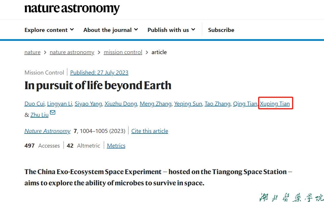 本网讯(通讯员 邓锴)近日,我校生物医学工程学院医学技术研究生传来喜讯,邓锴教授指导的2020级研究生田栩萍和2021级研究生高健在中科院微生物研究所学习期间,有幸参与了中国生态系统外空间实验(CHEESE)的地面部分,该部分实验为顺利开展太空实验奠定了基础。相关论文发表在Nature子刊Nature Astronomy、RNA Biology和Metabolic Engineering上。