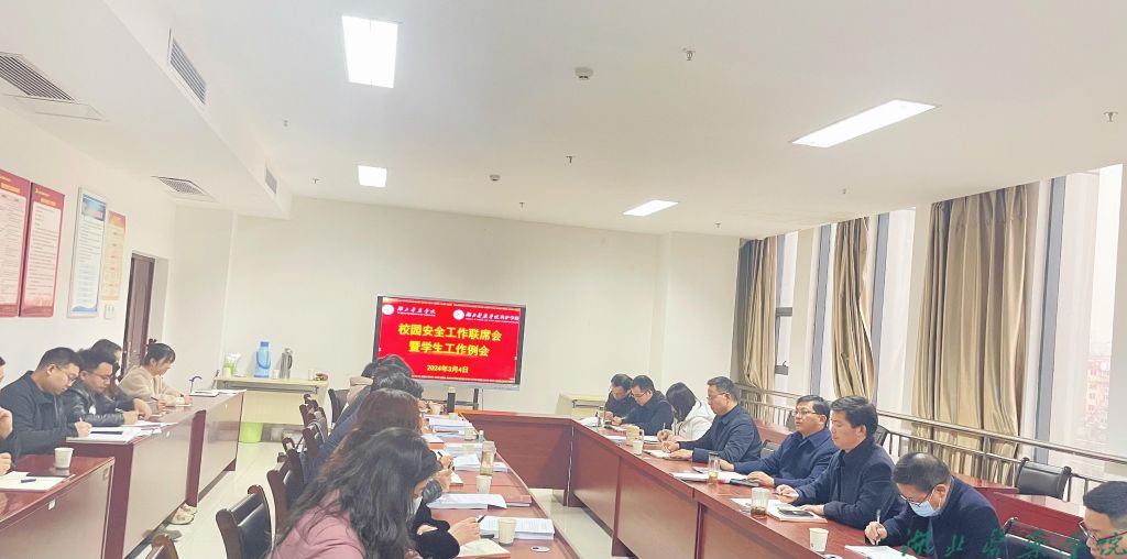 本网讯(通讯员 陈胜敏)3月4日下午,新学期首次校园安全工作联席会暨学生工作例会在科教楼513会议室召开。党委常委、组织部部长张海蛟,宣传部、保卫处、教务处、资产处、后勤处、学工部、团委和各学院分管学生工作负责人参会。