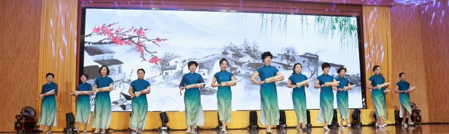 表扬会后,精彩绝伦的女职工风采展演拉开序幕。大气磅礴的乐器合奏《象王行》余音绕梁;悠扬婉转的歌唱唱尽春日美好;抑扬顿挫的诗朗诵和每一段拨弦动情的声音都渲染青春;行云流水的走秀,“繁弦奏渌水,长袖转回鸾。”……展演现场气氛热烈,高潮迭起,赢得了现场师生的阵阵掌声。