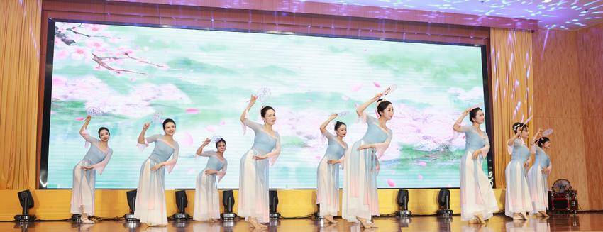 表扬会后,精彩绝伦的女职工风采展演拉开序幕。大气磅礴的乐器合奏《象王行》余音绕梁;悠扬婉转的歌唱唱尽春日美好;抑扬顿挫的诗朗诵和每一段拨弦动情的声音都渲染着美好青春;行云流水的走秀,“繁弦奏渌水,长袖转回鸾。”……展演现场气氛热烈,高潮迭起,赢得了现场师生的阵阵掌声。