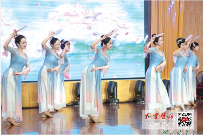 湖北医药学院女职工表演古典舞《烟雨行舟》。