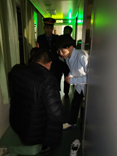 当日,高康被紧急的广播声唤醒,听到列车员在呼喊医护人员后,他下意识站起举手回应,并立即赶到事发车厢。只见该男子满头大汗,用手捂着腹部和胸口,痛苦地蜷缩成一团,详细询问过后,他对该男子情况有了初步判断。恰逢高康正在同济医院急诊科轮转实习,为保证救助的及时、准确,他立即打电话向老师求助。老师详细了解情况后,初步判断该男子可能为心肌梗死,但是列车还需要40分钟才能停靠下一站。关键时刻,列车员在急救箱内找到速效救心丸,高康在老师的指导下,帮助男子舌下含服了小剂量救心丸。不久,男子的疼痛有了缓解的迹象,头上的大汗也逐渐消失,最终转危为安。直到列车到站,高康一直陪伴在他身边确保他的安全,并建议他立即前往附近医院接受进一步检查和治疗。