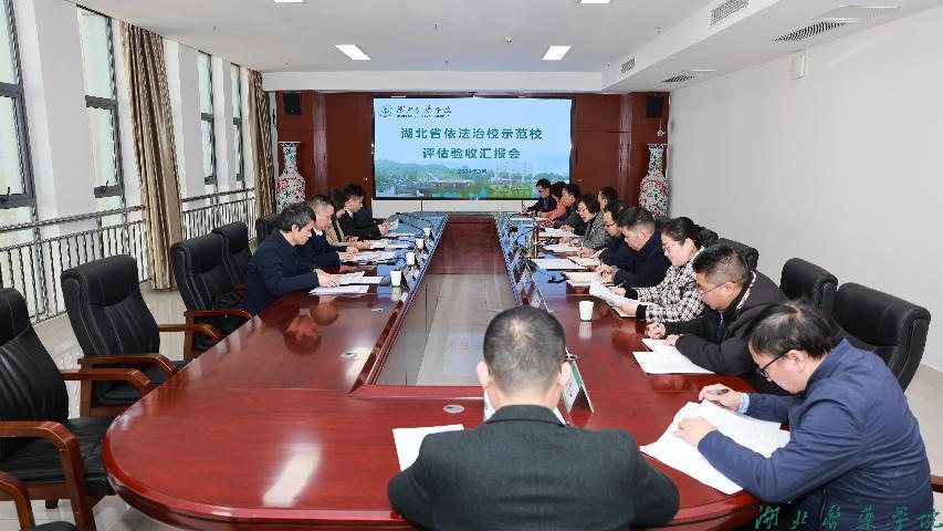 本网讯(文/丁陵溪 图/鲍晓宇)3月11日,湖北省依法治校示范校评估验收组一组组长、武汉理工大学法学与人文社会学院副院长刘介明教授一行来校开展依法治校示范校评估验收工作,党委书记郑丹凤,党委副书记、校长王云甫,以及学校法治工作机构负责人、相关单位负责人、院系负责人、教师代表、学生代表参加汇报会,开展座谈交流。