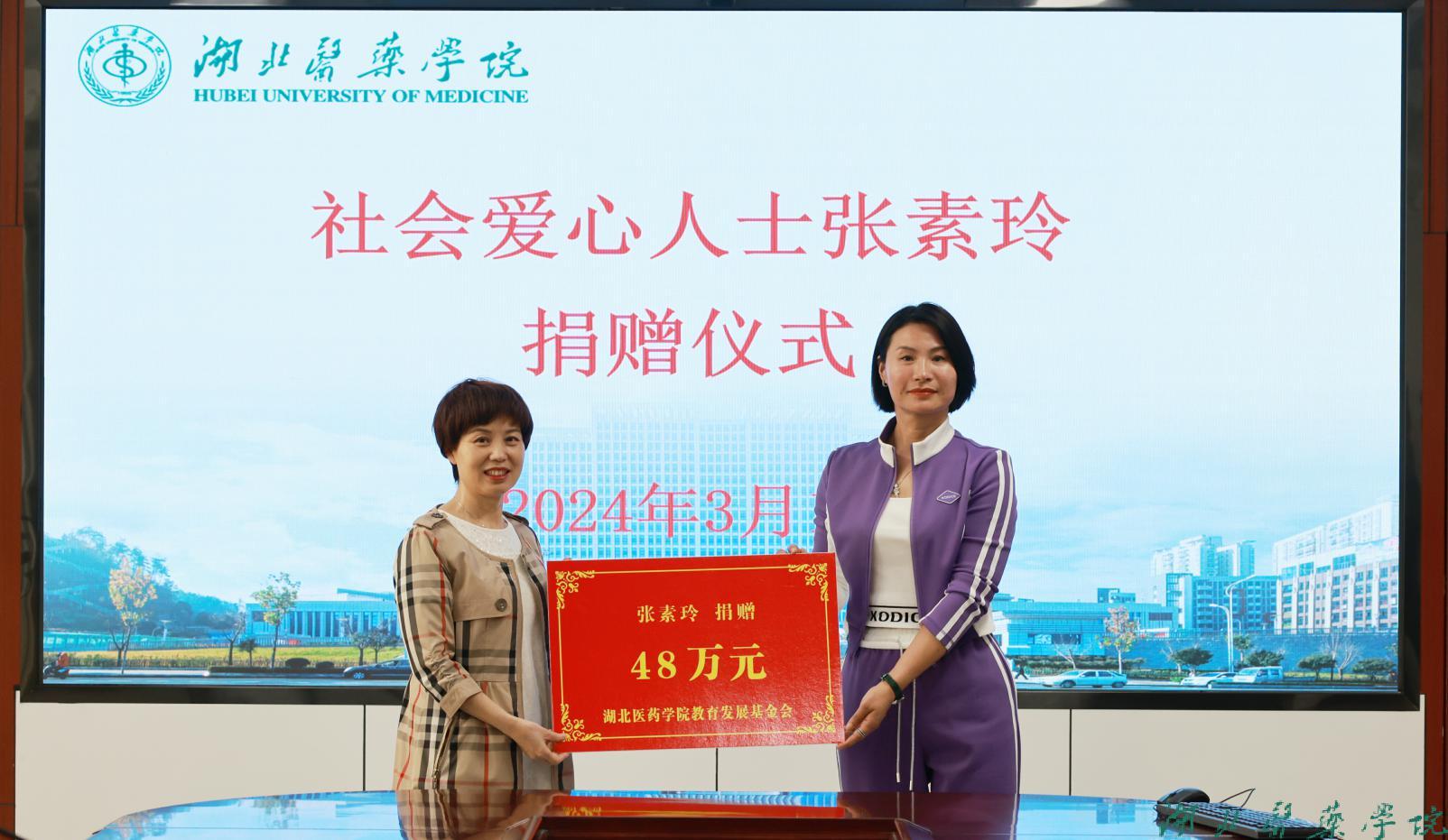 张素玲表达此次捐赠的初衷,湖北医药学院作为鄂、渝陕豫毗邻地区唯一独立设置的医学本科院校,为地方培养一大批高素质、高水平的医疗卫生专家,为地方医疗事业发展贡献了力量。做为一名普通市民,理应尽己所能去支持学校更快更好的发展,为培养更多的医疗卫生人才出一份力、尽一份责。