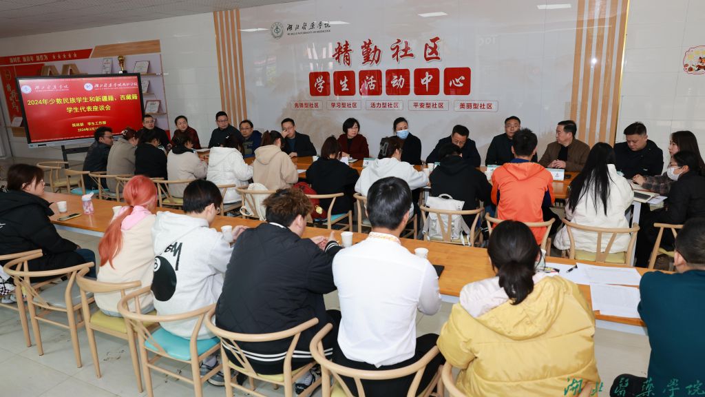 与会人员共同观看铸牢中华民族共同体意识宣传视频,少数民族专职辅导员阿卜杜海拜尔·杰力力领学《中华民族共同体概论》第一讲内容。学生代表就在校期间的学习生活情况踊跃发言,提出意见建议。相关职能部门负责人对学生诉求进行解答。