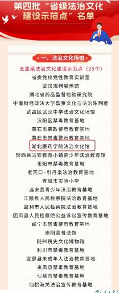 本网讯(通迅员 丁陵溪)近日,省委依法治省办、省司法厅、省普法办下发通知,命名表彰全省第四批“省级法治文化建设示范点”。湖北医药学院法治文化馆获批五星级法治文化建设示范点。