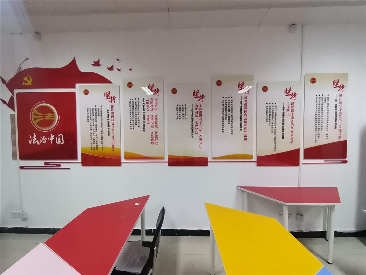 学校法治文化馆位于大学生学习支持中心,于2023年6月建成,场馆面积700多平方米。该馆分为习近平法治思想专题馆、金融教育馆、反诈宣教馆、法治书屋馆等四个部分。该馆先后成为湖北省金融教育示范基地、十堰市反诈宣传教育基地和十堰市“八五”普法依法治理工作联系点。四个馆主要面向全校师生,同时兼顾社会公众,以法治为主题,以艺术化、生活化的文化形式为载体,具有引领、熏陶、教育、涵养等功能。法治文化馆全天候开放,大学生既可以在馆内自习,也可以在馆内开展各种活动。内容多元的法治文化,功能多样的场馆布局,深受师生和社会大众喜爱,每年参观受教育人数在6000人次以上。