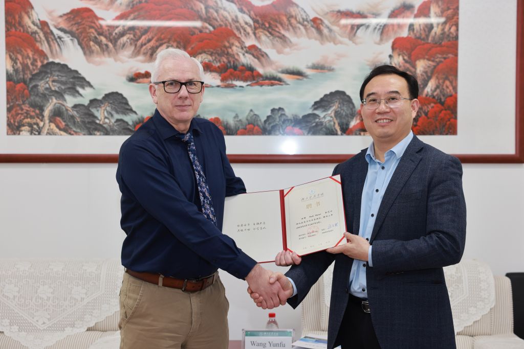 22日,Mark Hayter教授一行参观了校史馆、生命科学馆、护理学院和科研平台。随后,学校举行欢迎仪式。党委副书记、校长王云甫,党委常委、副校长严世荣及相关部门负责人参加欢迎仪式。王云甫介绍学校发展现状、办学优势及特色,希望双方以此次访问为契机,不断增进了解,深入谋划两校交流项目,持续巩固两校间良好合作关系。Mark Hayter介绍曼彻斯特城市大学的基本情况,回顾两校交流的历程,他表示曼城大愿意在教师进修、学生交流、科研合作等方面与我校开展进一步合作。随后,王云甫为Mark Hayter教授颁发名誉教授聘书。
