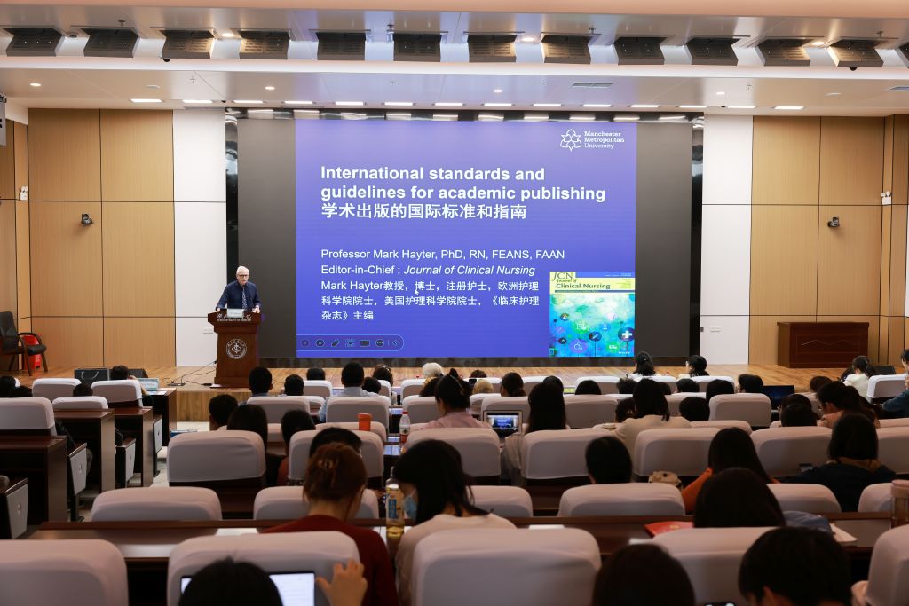当天下午,Mark Hayter在公卫大楼报告厅为我校师生作题为“International standardsand guidelines for academic publishing”的学术讲座,他以《临床护理杂志》主编的视角,介绍国际学术期刊的录用标准和指南,分享如何提高健康研究的质量和透明度和促进研究出版的诚信等内容。