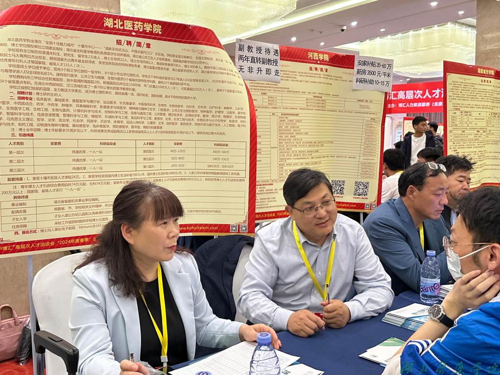 招聘现场,我校展位前博士人才络绎不绝,张海蛟热情接待,向青年学子详细介绍十堰城市特色、人才引进政策、学校办学情况等情况,对博士们关心的科研项目、科研平台、学科建设、福利待遇和职业发展等问题进行解答,诚邀青年博士加入学校、共创美好未来。招聘会现场共收到博士简历20余份,达成意向12人。